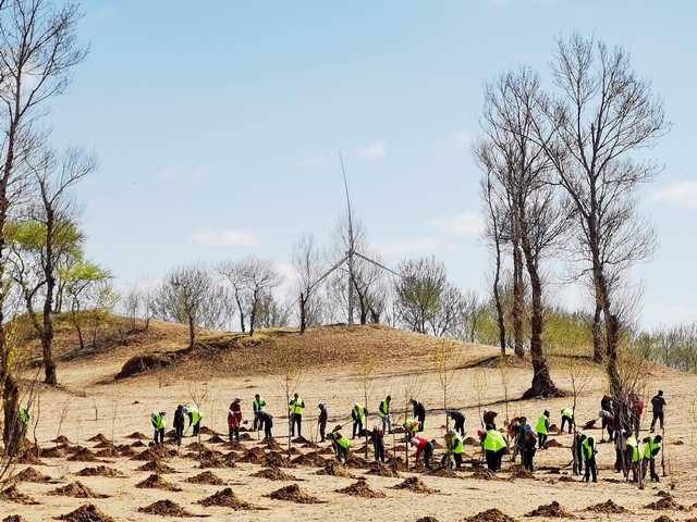 4月22日,辽宁省彰武县章古台林场万亩沙棘种植项目现场。摄影/章轲。这些项目是我国荒漠化防治工作的重要组成部分。