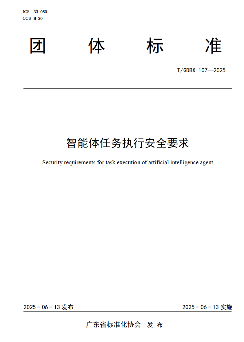6月13日,广东省标准化协会发布了团体标准《智能体任务执行安全要求》,为智能体开发和运营提供了明确的行为规范。该标准虽不具强制性,但由团体成员约定采用或自愿采用。