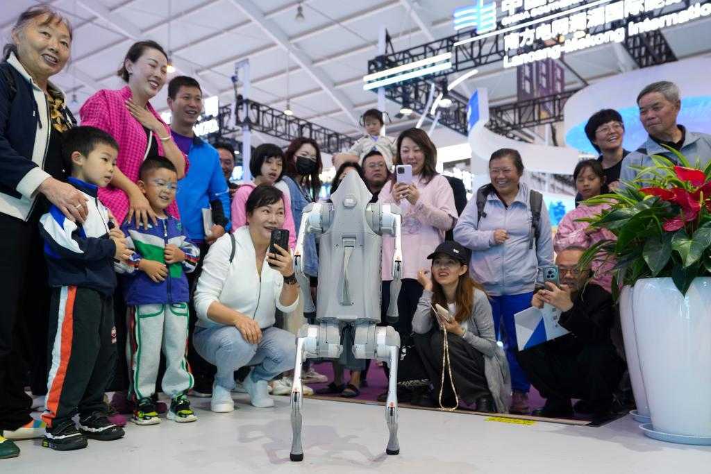 观众在第9届中国—南亚博览会上观看机器狗表演。新华社记者陈欣波摄