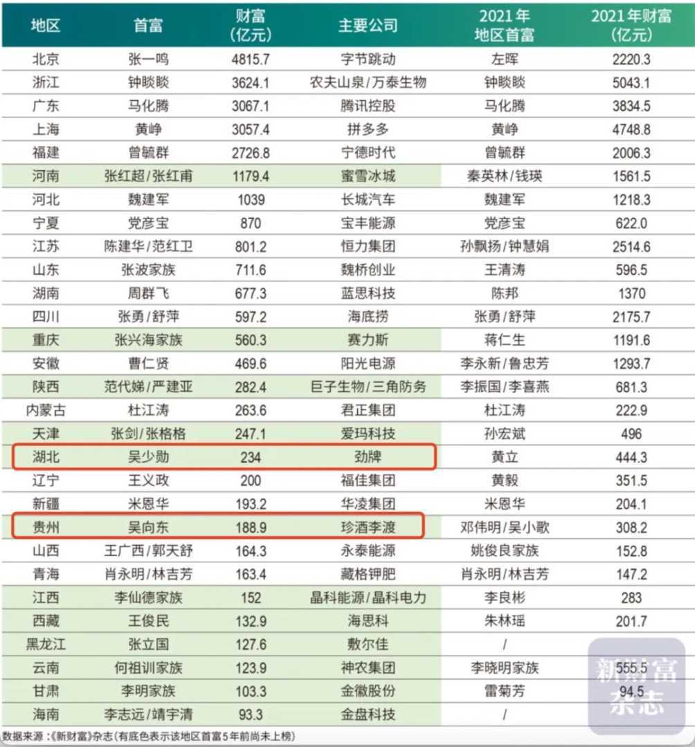 吴向东则以188.9亿元的身家问鼎贵州首富。