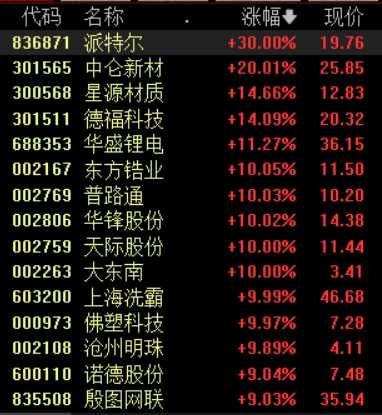 6月26日,固态电池板块延续强势,截至发稿,中伦新材、派特尔、普路通等10股涨停,星源材质、福德科技、华盛锂电等涨幅居前。