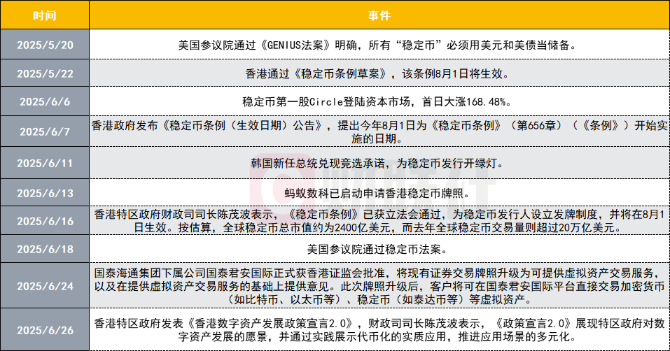 (上图:近期稳定币大事件一览,截止时间:2025.6.26)