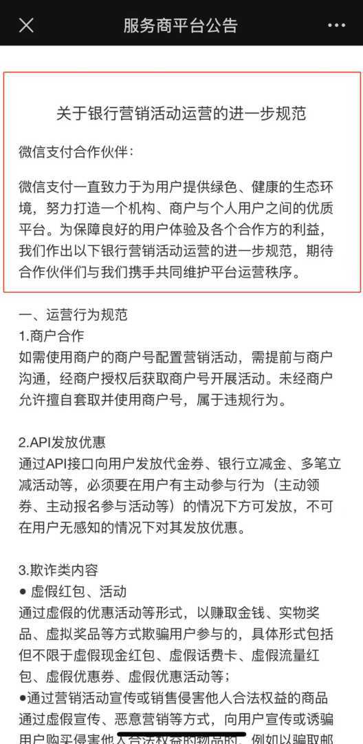 规范要求,商户合作需提前沟通授权,API发放优惠需用户主动参与,欺诈类内容运营也被纳入规范。违规者将视情节采取约束策略,包括回收权限、封禁商户号等。