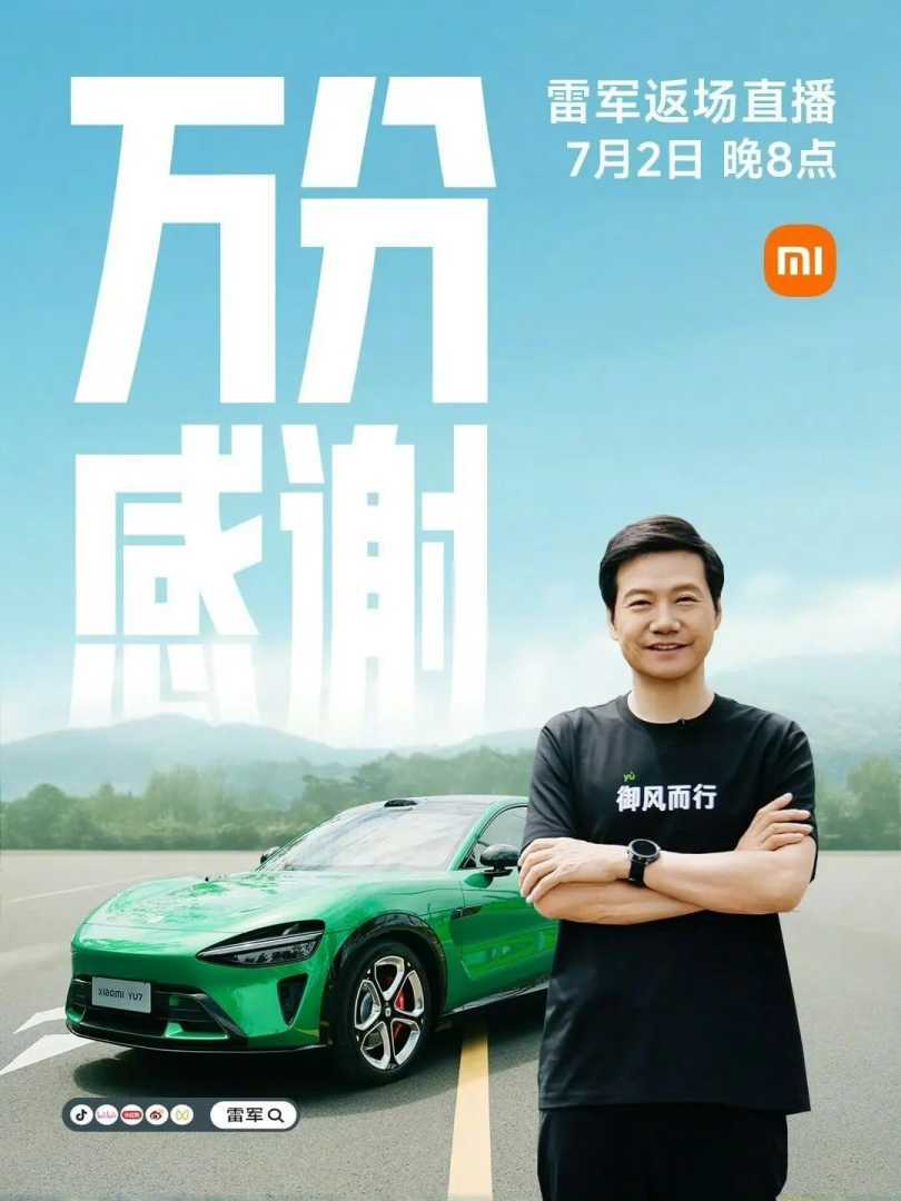 刚于6月26日开完发布会的小米集团董事长雷军宣布,将于7月2日晚8点增加一场直播,分享小米YU7上市背后的故事。“雷总相当于做个返场,聊聊生产、研发背后的故事,顺带解答近期消费者关心的问题。”小米集团有关人士对记者解释。