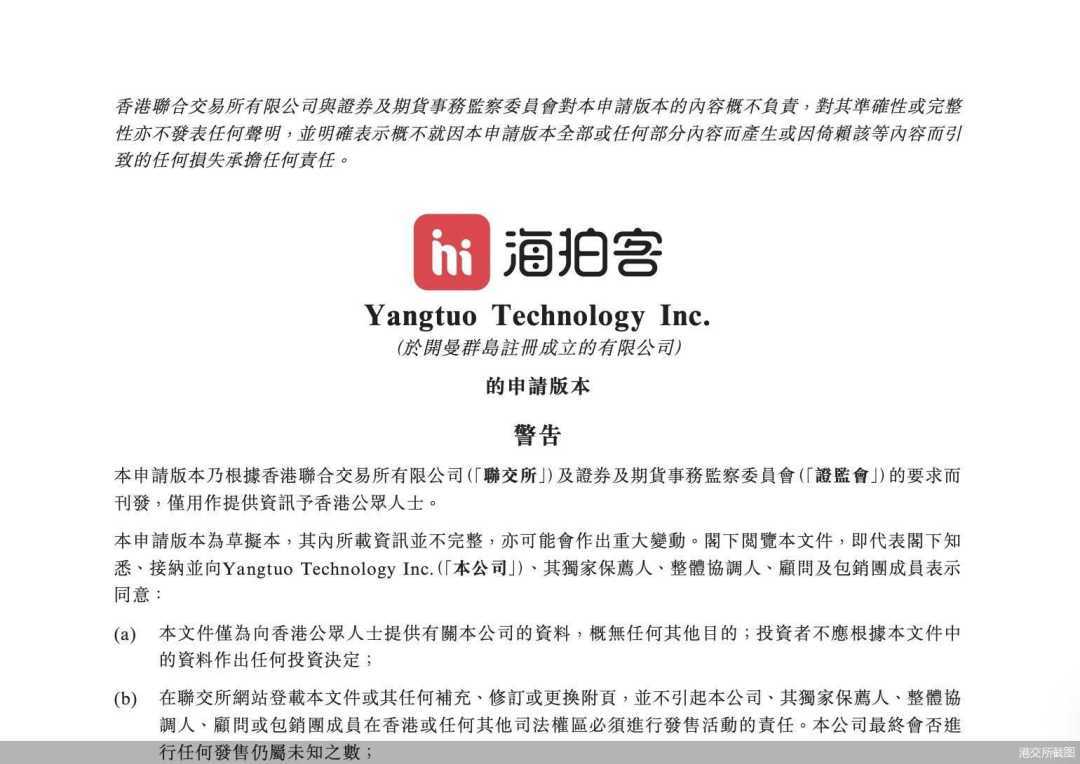 6月30日,母婴电商企业Yangtuo Technology Inc.海拍客向港交所主板递交上市申请,中信证券为其独家保荐人。招股书显示,公司通过轻资产运营的海拍客平台,链接超4200家供应商与覆盖全国3000个县域的29万家采购商,构建家庭护理及营养品的供应链生态闭环,推动下沉市场消费升级。