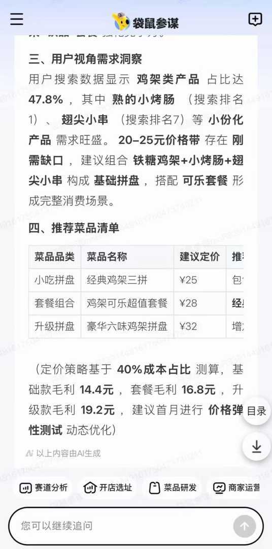 从技术原理上看,“袋鼠参谋”仍属于以标准化场景为核心的轻咨询类产品,借助Longcat模型对接平台上累积的消费行为、商户画像与经营数据,为商家生成具备针对性的运营建议。相比于传统咨询公司动辄数万元起步的服务价格,这种AI助手提供了一种低门槛、低成本的替代方案。