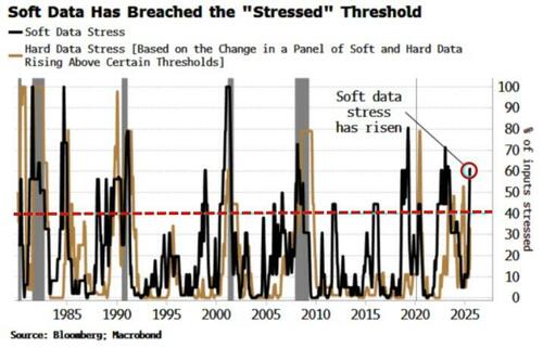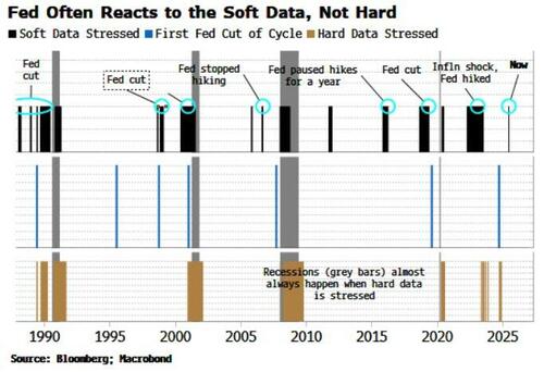 White指出,硬数据和软数据对追踪经济演变都至关重要。经济衰退往往源于软数据与硬数据之间的相互作用。软数据恶化通常由情绪主导,政策宽松可逆转。若美联储等到硬数据受威胁才行动,可能为时已晚。