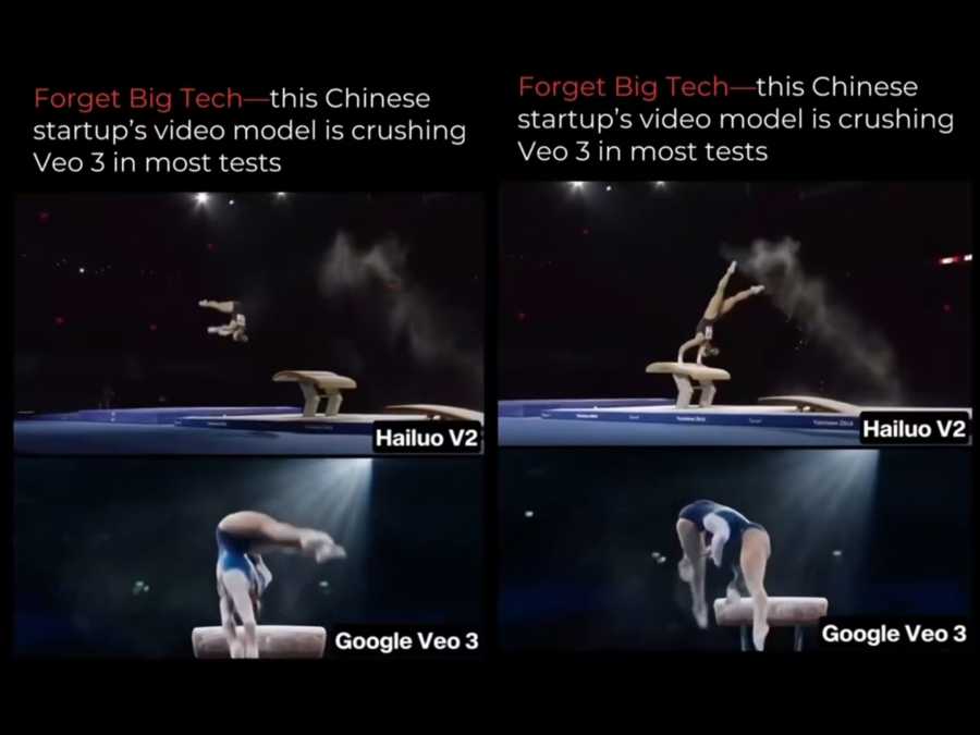 MiniMax的视频生成大模型Hailuo 02,直接叫板谷歌第三代视频生成模型Veo3。Hailuo 02实现了对物理世界规律的极致理解,其生成的“猫跳水”视频在Instagram发布后一周内,即获3亿现象级流量,开创出“动物奥运会”这一AI视频新品类。