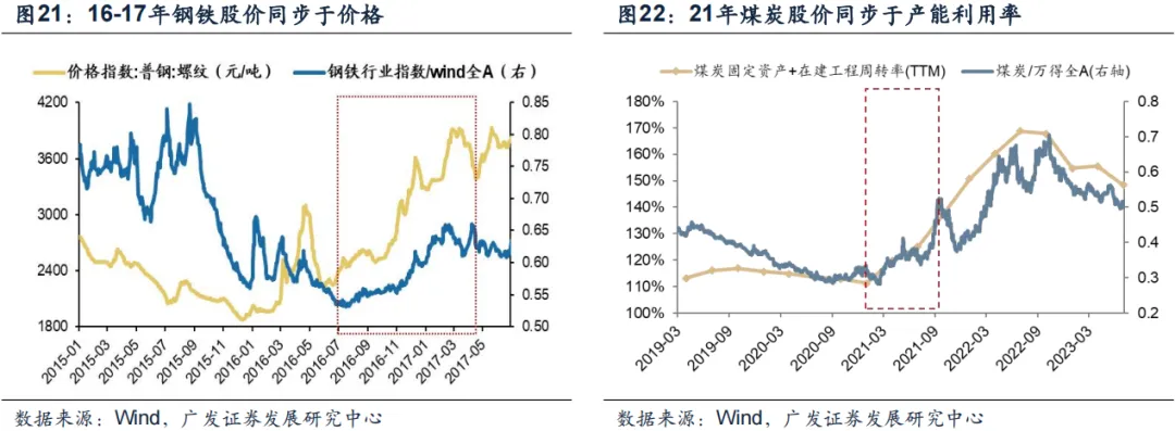 三段“供给收缩”行情结论:市场对政策力度有从“将信将疑”到确认过程;股价上涨需看到工业品涨价或资产周转率提升;【经济周期类】资产表现以政策触达行业为主力,需求侧配合辐射面更广;终结行情主要因素是政策退潮、需求证伪。