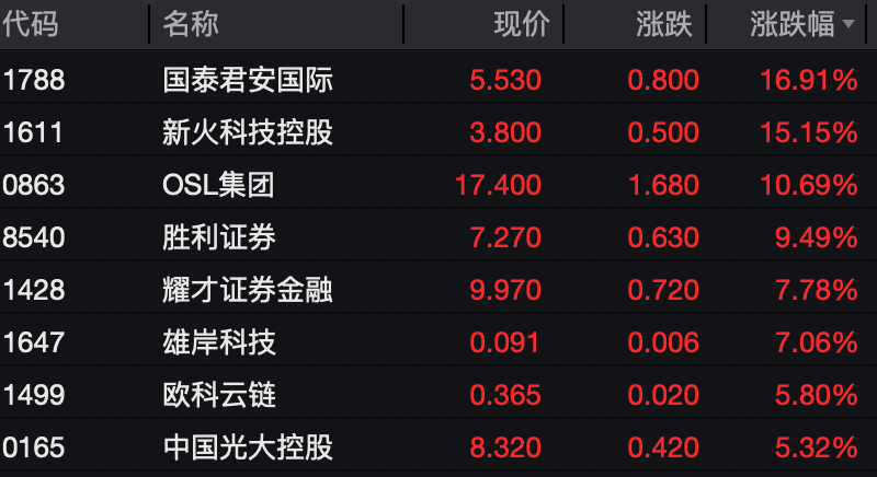 在金涌投资大涨带动下,稳定币概念股再次大涨,新火科技控股、国泰君安国际等上涨超10%。