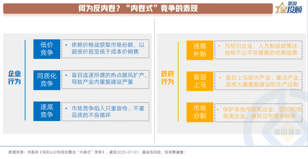 1)何为反内卷?“内卷式”竞争主要涉及企业和地方政府两类行为主体,企业端表现为低价竞争、同质化竞争、宣传营销“逐底竞争”,地方政府行为体现为违规补贴、盲目上马、市场分割。