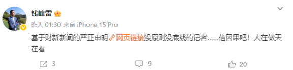 今年7月,钱峰雷再次陷入质疑。