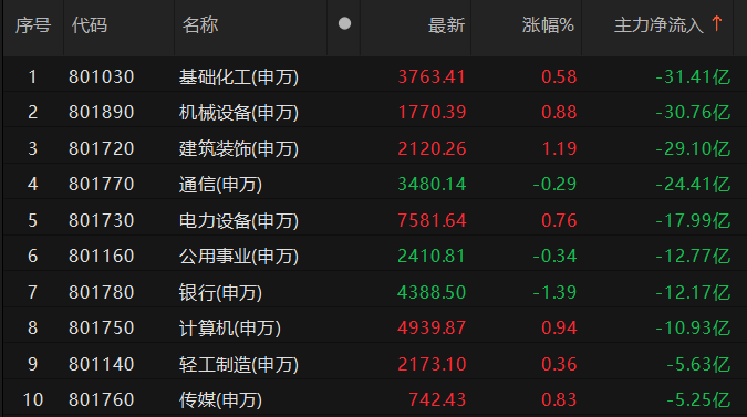 截至7月24日14时15分,申万一级行业板块中,主力资金净流入有色金属板块超60亿元,成为市场关注焦点,而基础化工、机械设备板块则净流出超30亿元。