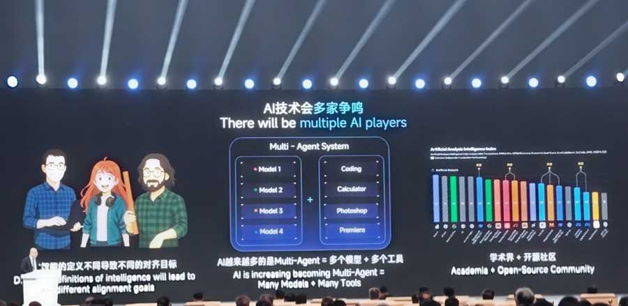 但人们担心,越来越强的AI,未来会不会由少数公司掌握?闫俊杰认为,未来一定是多个玩家持续存在。原因包括,不同公司的价值观,会使不同的模型拥有各自的特点,使其能长期存在;同时,越来越多开源模型开始产生影响力,且能力越来越逼近最好的闭源模型。