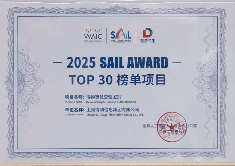 7月26日,2025年世界人工智能大会开幕,得物人工智能查验系统亮相并斩获SAIL奖。该系统依托海量查验鉴别数据,提升鉴别效率,覆盖众多品类,为人工智能产业发展贡献力量。