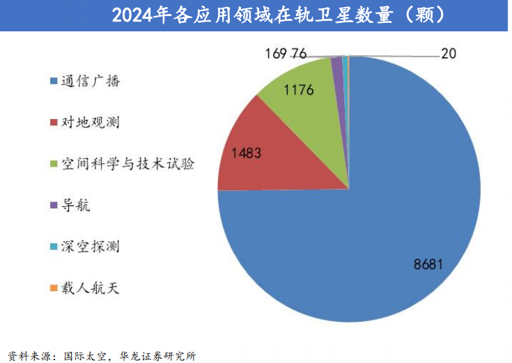 2024年全球在轨航天器超1.16万颗,美国占75.9%,中国以1094颗居次,通信广播卫星占比超74%。低轨卫星扩张显著,美国“星链”2024年新增1982颗,我国“千帆”“吉利”等星座发射100余颗,但单火箭平均带星量待提升。“猎鹰”和“长征”火箭主导2024年发射,占比50.9%和18.6%,我国政策持续支持卫星互联网行业发展。