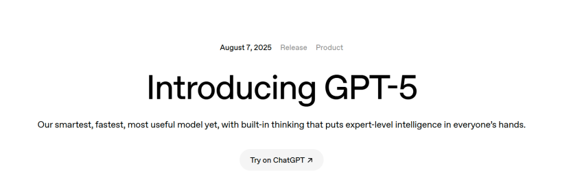 GPT-5正式发布:编程及智能体任务能力显著提升