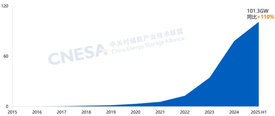 截至2025年上半年,中国新型储能累计装机规模达到101.3GW,同比增长110%,首次突破100GW,累计装机规模是“十三五”时期末的32倍,新型储能装机规模实现跨越式增长。