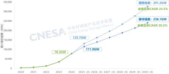 展望未来,CNESA预测,2030年中国新型储能累计装机规模保守场景下将达236.1GW,理想场景下超291GW,未来五年复合增长率超20%。随着沙戈荒大基地、零碳园区、虚拟电厂等新场景拓展,以及材料、结构与智能化技术协同创新,新型储能将在保障电力安全、推动“双碳”目标实现中发挥更核心作用,为能源转型和可持续发展贡献力量。
