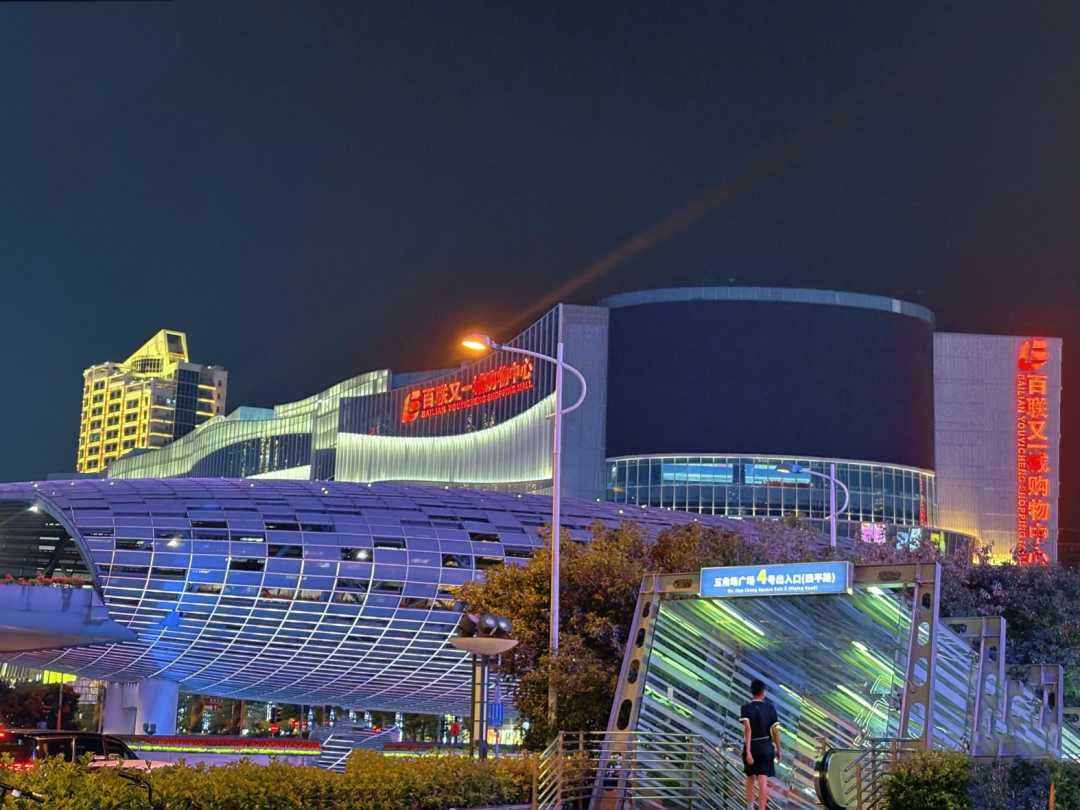 图为10月1日晚间华安百联消费REIT底层资产百联又一城购物中心。 (杨溢仁摄)