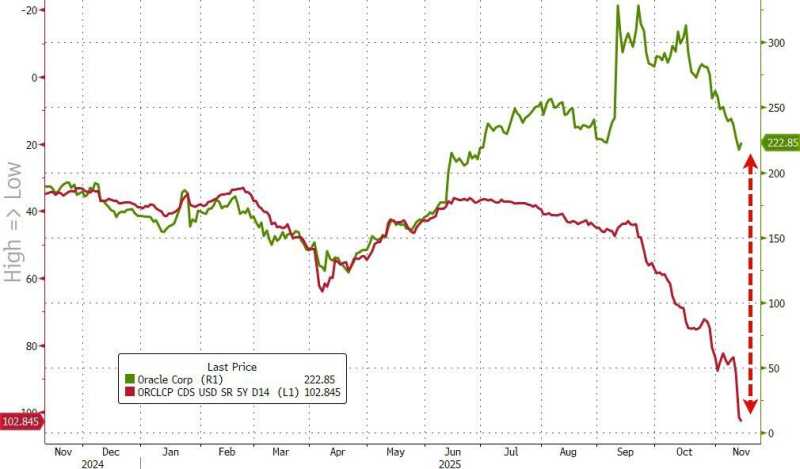 数据显示,自9月以来,随着对甲骨文公司债券信用保护的需求激增,相关信用衍生品的成本已翻了逾一倍。截至11月7日的六周内,与甲骨文相关的CDS交易量激增至约42亿美元,远超去年同期的2亿美元。