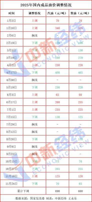 根据“十个工作日”原则,下一轮成品油零售限价调整时间为12月22日24时,也是2025年最后一次调价。