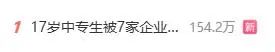 12月1日,#17岁中专生被7家企业疯抢#的话题登上热搜榜首位。