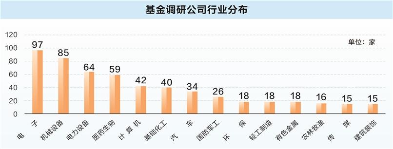 从行业分布来看,电子、机械设备、电力设备、医药生物、计算机五大行业在11月最受公募基金和阳光私募的关注,均有超过40家公司获得调研,合计占比超过半数。这五大行业在当月市场表现中占据了重要地位。