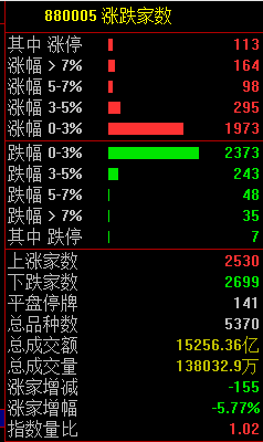 当天,市场共有2530只个股上涨,其中113只个股涨停;而下跌个股则达到2699只。