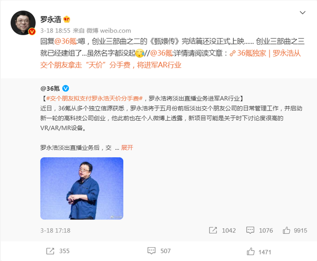 6月12日,罗永浩发布微博,宣布将再次投身创业浪潮,并退出所有社交平台。这一消息让人联想到他之前的言论,不禁猜测罗永浩的“真还传”是否即将迎来大结局。