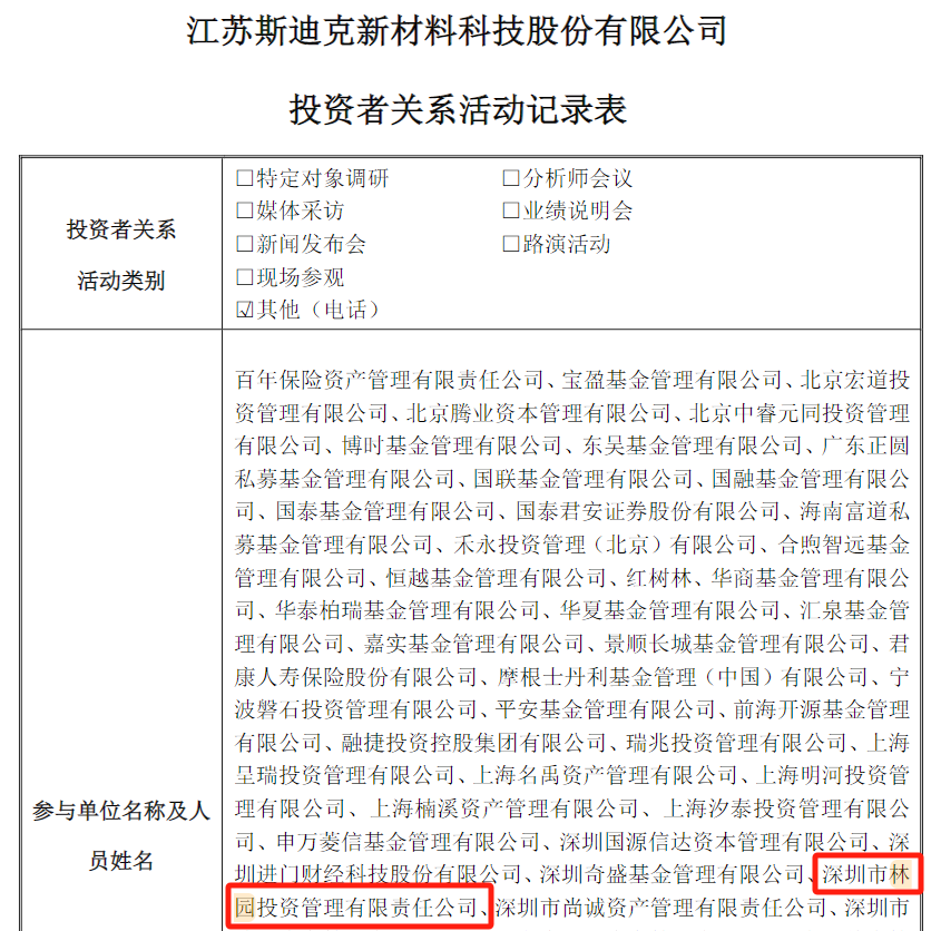 近期,林园投资罕见现身于A股公司斯迪克(300806.SZ),这也是其2025年以来首次公开现身。