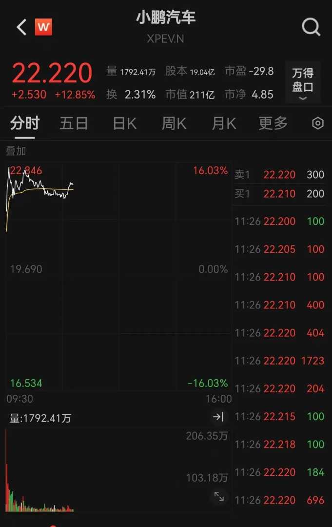 同日晚间,小鹏汽车董事长何小鹏在财报电话会上透露,2025年销量目标、AI业务创新及人形机器人等重磅信息。财报发布后,小鹏汽车在美股开盘一度涨超15%,截至发稿,涨幅超12%。