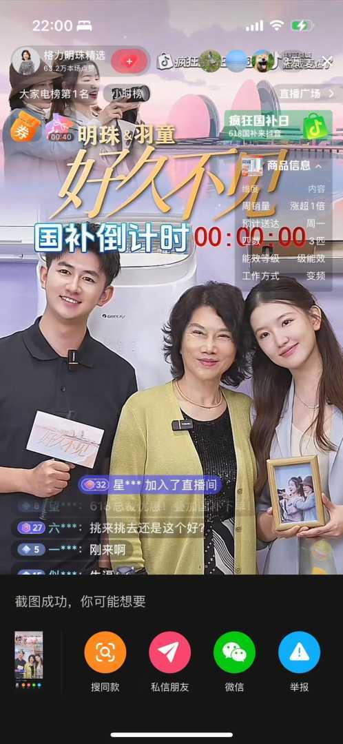 5月23日晚,格力电器董事长董明珠与前秘书孟羽童时隔两年重新合作直播,观看人次达298.7万。两人关系回暖,为格力短期内吸引了大量流量,近30天销售额约2500万元至5000万元,粉丝增加1万。格力面临空调市场竞争压力,孟羽童回归能否为格力带来更多线上消费者还需观察。
