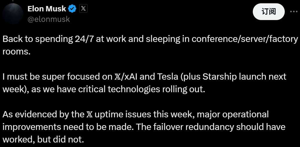 马斯克重回7x24小时工作制,全力推进X/xAI与特斯拉