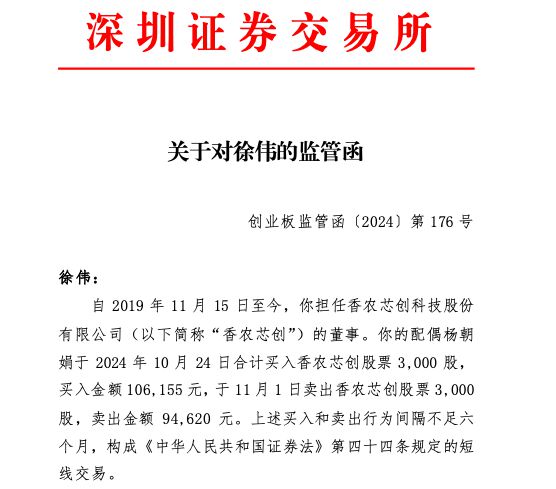 深交所对多家公司董监高发出监管函,因短线交易违规