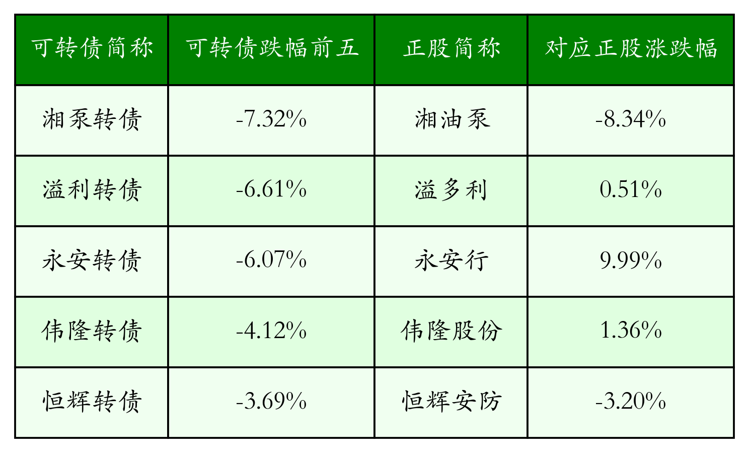 此外,市场还出现了一定程度的下跌,今日有2只可转债对应的正股跌幅超过5%,但并未出现正股跌停的情况。
