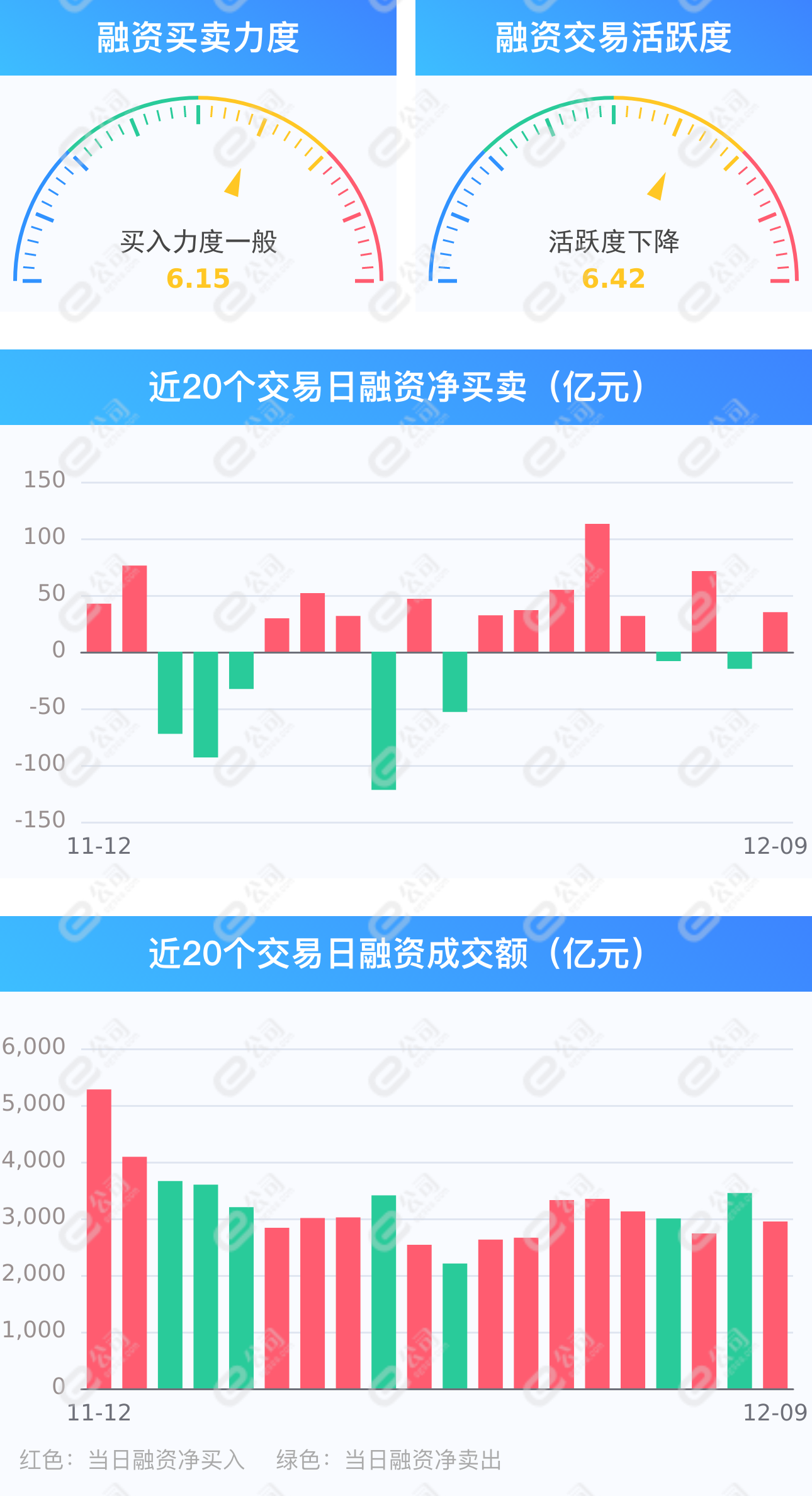 截至12月9日,沪深交易所融资余额均有所增加,其中上交所增加2.23亿元,深交所增加32.66亿元。两市合计增加34.89亿元,但交易活跃度下降14.53%。