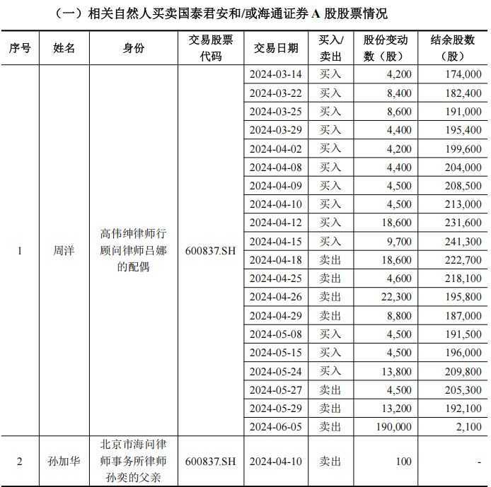 国泰君安海通证券合并交易内幕知情人自查报告发布