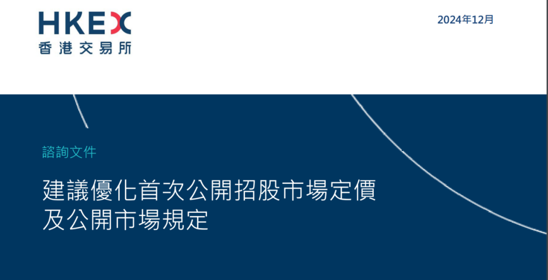 12月19日,香港交易所全资附属公司联交所发布了关于优化首次公开招股市场定价及公开市场规定的咨询文件,咨询期至2025年3月19日。此次改革旨在提升香港上市机制的吸引力和竞争力。