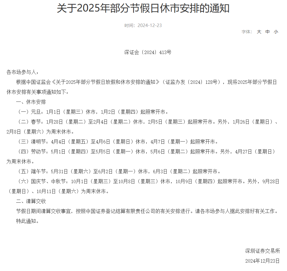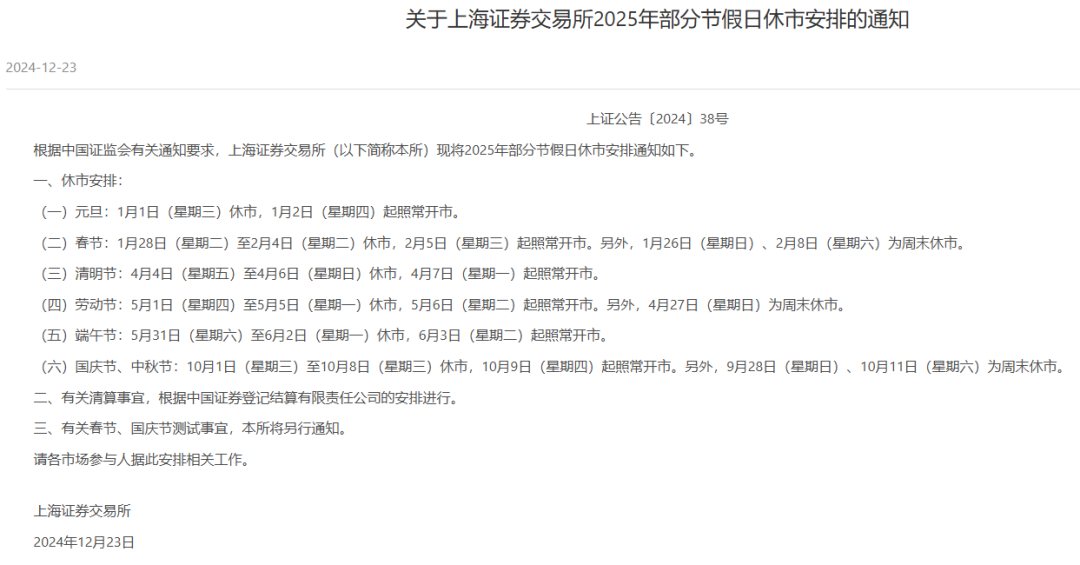 2025年交易所节假日休市安排公布