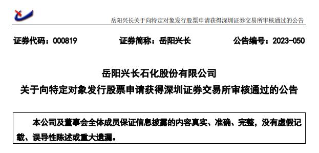 岳阳兴长向特定对象发行股票获深交所审核通过