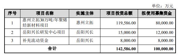 2023年6月15日,岳阳兴长发布了2022年度向特定对象发行股票募集说明书(修订稿),计划募集资金不超过10亿元,扣除发行费用后的净额将用于惠州立拓30万吨/年聚烯烃新材料项目、岳阳兴长研发中心项目及补充流动资金。