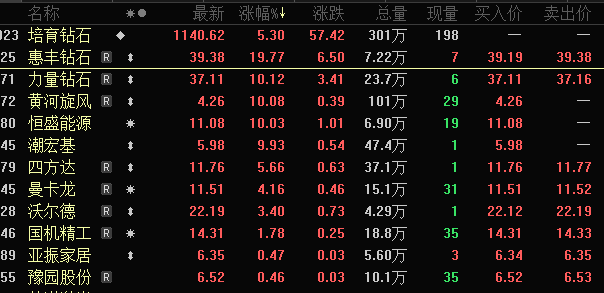然而,在科技题材普遍回调的背景下,部分传统行业及新兴概念却逆市上扬。其中,培育钻石、免税概念、白酒、天然气、种业及新零售等板块表现突出。特别是培育钻石指数,早盘涨幅一度领跑市场,惠丰钻石股价大涨近20%,黄河旋风、潮宏基、恒盛能源等多只个股涨停,力量钻石、四方达等个股也录得较大涨幅。