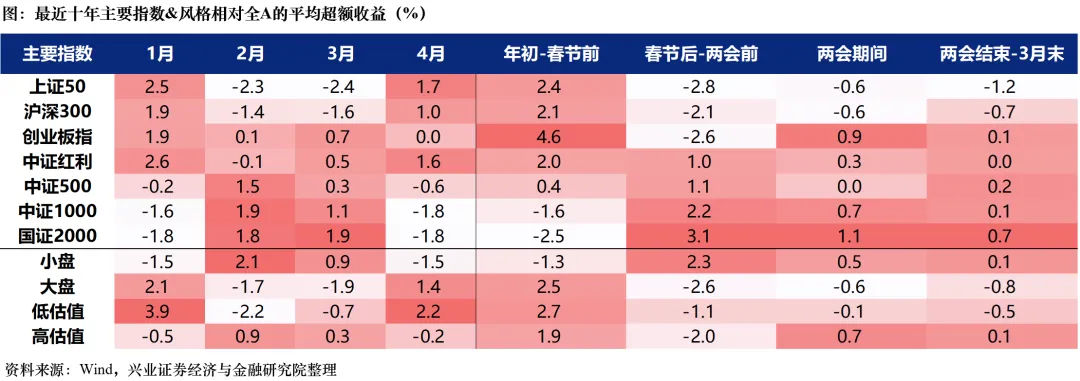 摘要:一季度市场表现规律揭晓。兴业证券研报深度剖析,揭示近十年市场季节性规律。1月(年初至春节前),大盘、红利风格独领风骚;而2月(春节后至两会期间),市场风格则显著切换至小盘。