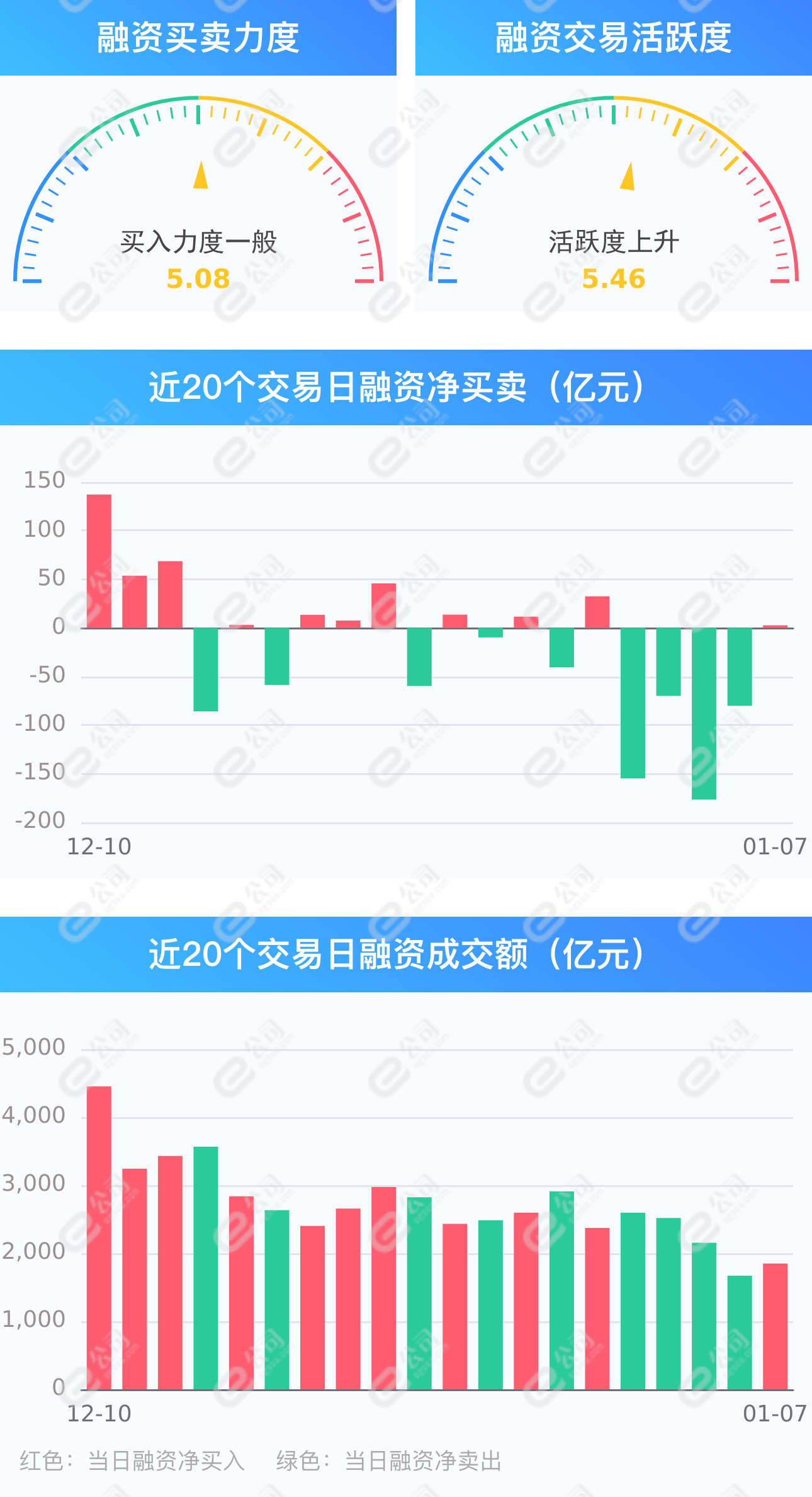截至1月7日,上交所融资余额减少,深交所融资余额增加,两市合计增加2.52亿元,融资交易额占A股成交额17.16%,交易活跃度上升10.71%,融资客中止连续4日净卖出。