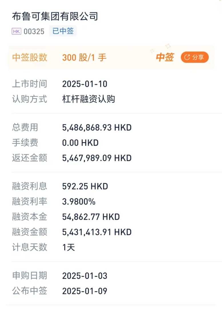 布鲁可(00325)今日暗盘开盘价为82.05港元,涨幅达36%。截至发稿,股价已攀升至103.2港元,涨幅高达71%。这意味着,中签一股的投资者可获得约1.28万港元的收益。尽管申购中签率低,但仍有不少投资者分享了他们的中签结果,有人甚至斥资548.68万元仅中签300股。
