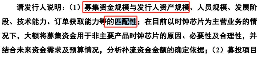 上交所要求公司说明募集资金规模与公司资产规模等的匹配性,以及大额将募集资金用于非主要产品时钟芯片的原因、必要性及合理性。同时,交易所还要求公司说明募投项目与原有业务和核心技术的关系,以及是否存在较大技术壁垒及市场开拓风险。