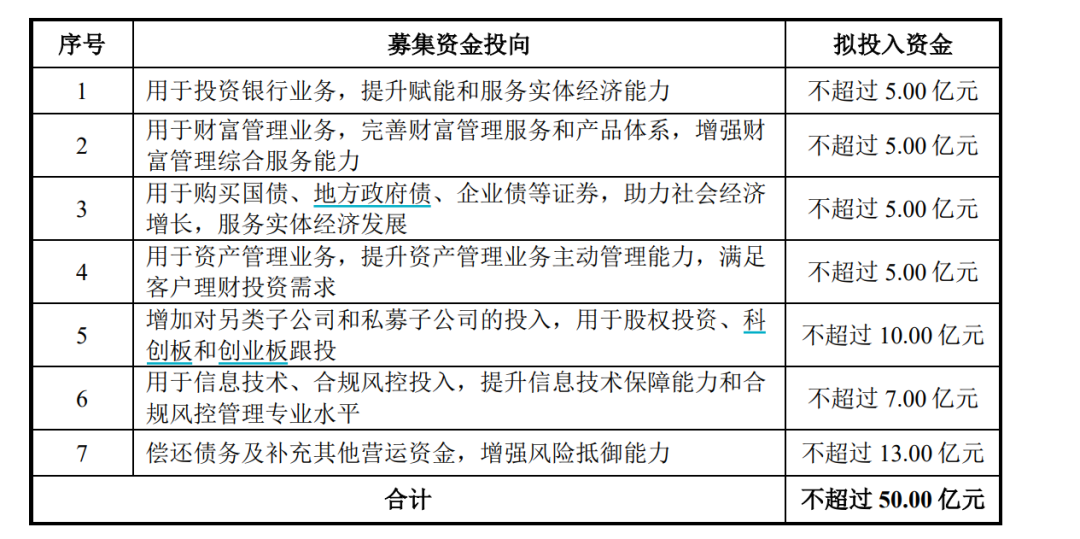 根据最新披露的预案,南京证券的募资投向从聚焦投资转向均衡布局:对投行、财富管理、自营、资管各投5亿元;13亿元用于偿债补流,10亿元投入另类和私募子公司,7亿元则用于信息技术及合规风控。