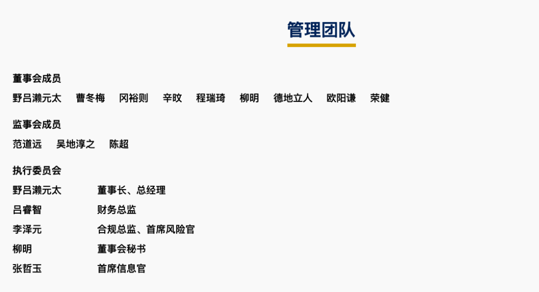 从股东结构看,大和证券(中国)的大股东为株式会社大和证券集团总公司,持股51%,该公司创立于1902年,总部位于东京,是日本最大的证券公司之一;其余的中方股东为北京国有资本运营管理有限公司和北京熙诚资本控股有限公司,持股比例分别为33%和16%,两者均为国资背景。