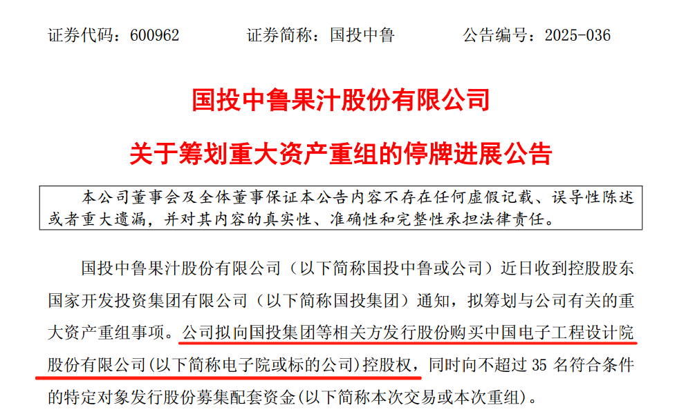 国投中鲁提示,截至目前电子院的审计、评估工作尚未完成,本次交易的具体交易价格尚未确定。相关资产经审计的财务数据、资产评估结果、最终交易价格等后续将在重组报告书中予以披露。